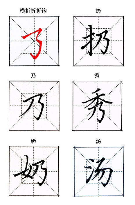 范字 范字笔画文字版 范字视频:横折折折钩、扔、乃、秀、奶、汤