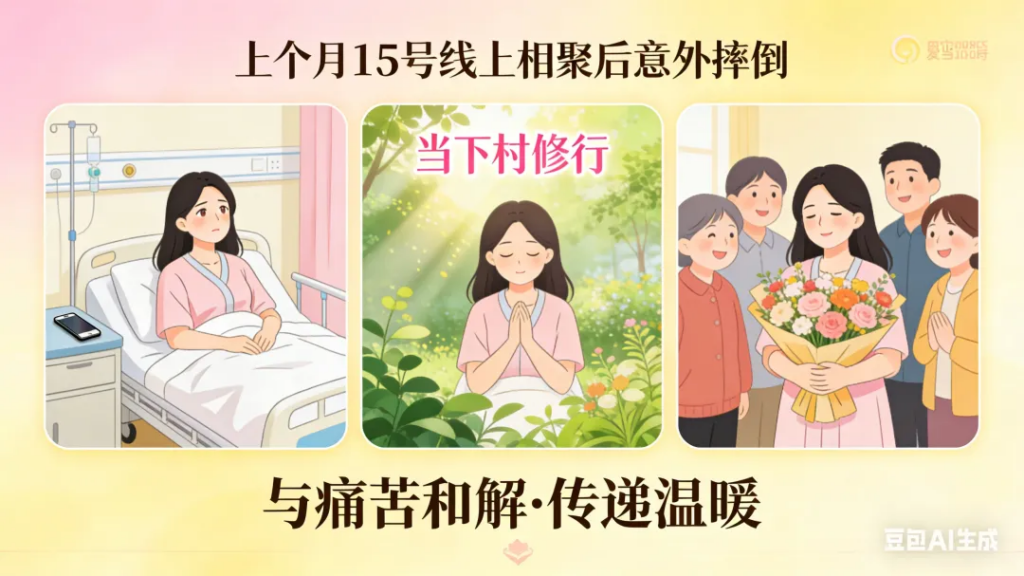 同学们说:“把病痛当成修行的入口吧。”我试着放下抵触,全然接纳这份境遇——把每一次断骨的剧痛,都当作觉察的契机;把卧床静养的时光,都当作生命慢下来的专属体验。